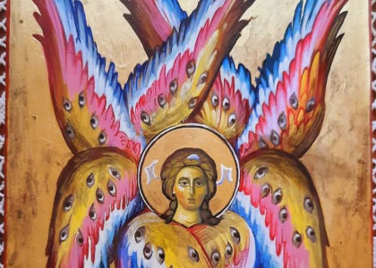 Angelology has some unexpected facets, and it might seem strange at first glance, even incredible. Indeed, for anyone reading the Scriptures for the first time, the God of Israel can seem quite strange in His own right. In the first instance, Christian theology teaches with some authority that there are nine choirs of angelic beings. That is to say, there are nine distinct types or species of Angel, each praising God in its own way, and each having its own role in the Divine economy. These nine Orders of Heavenly Spirits can be subdivided into three spheres. In the highest sphere, that which is closest to God, we have the Seraphim, the Cherubim and the Ophanim (the Ophanim are also known as Thrones). These spirits are so close to God, to the Heavenly Throne, that they are quite difficult to describe. They are not anthropomorphic, as most of the other angels appear to be. In fact, these Angels are often represented in zoomorphic terms, sometimes as hybrids. This is conveyed in the Prophet Ezekiel, and also in Christian Icons, where the four Evangelists are often associated with these “Living Creatures”, with a human, an eagle, a lion, and an ox. Their power and their otherness is conveyed by the Eucharistic Prayer of St. John Chrysostom, which we may quote:
