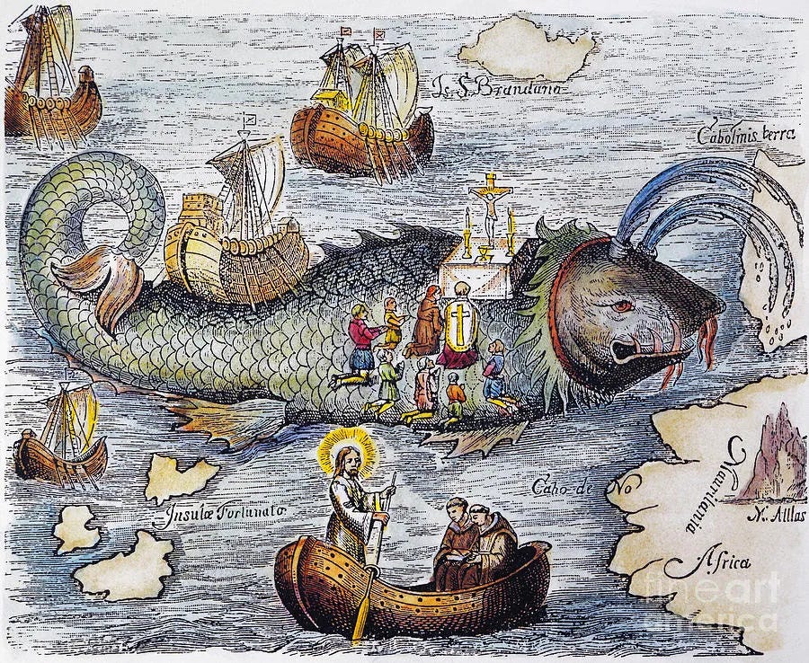 St Brendan performing Mass on the back of a sea monster