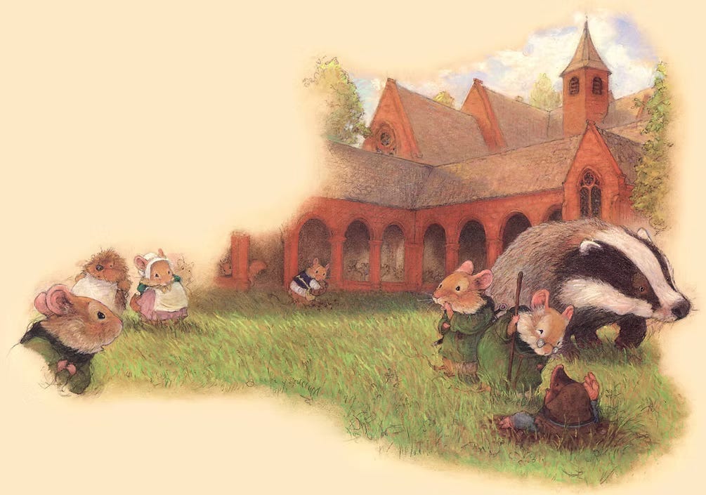 In JRR Tolkien’s essay ‘On Fairy Stories’ he discusses how ‘fundamental things’ are made ‘luminous’ through the fairytale, in other words looking at the mundane sideways, such as how in Lord of the Rings, the very familiar forest wakes up to help in the battle against Sauron. With the fairy monastery or the monk who goes to fairyland then, we have a familiar setting, since as we have discussed, the ‘wise man’ archetype of the monk and his abbey has been consistent in Western literature, yet that is now seen from a different dimension, the strangeness of reality itself is arrested and becomes a looking glass into ‘Faerie’, the grounded becomes mystical, because it always has been. Fantasy is not really an escape from reality but invigorates reality. Tolkien also says that the desire to speak with animals and not feel separated from them (and by extension nature itself) is the result of a guilt that has stayed with us since the Fall.