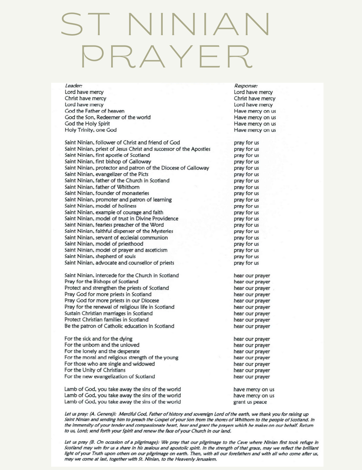 Scottish PrayersLitany of St NinianWritten by Msgr Peter Magee of St Ninians Whithorn for use in private, mass or on pilgrimage. St Moluag's CoracleAug 11, 2025SharePrevious
